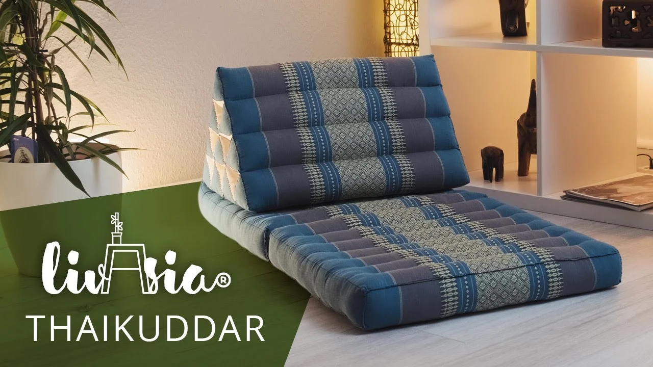 I Thailand känner man till den speciella triangelformade kudden sedan länge. Thaikudden kan enkelt fällas ut till en inbjudande trivseloas och den integrerade triangelkudden tjänar som ryggstöd. Den formfasta kudden är handgjord, robust och fantastiskt bekväm.